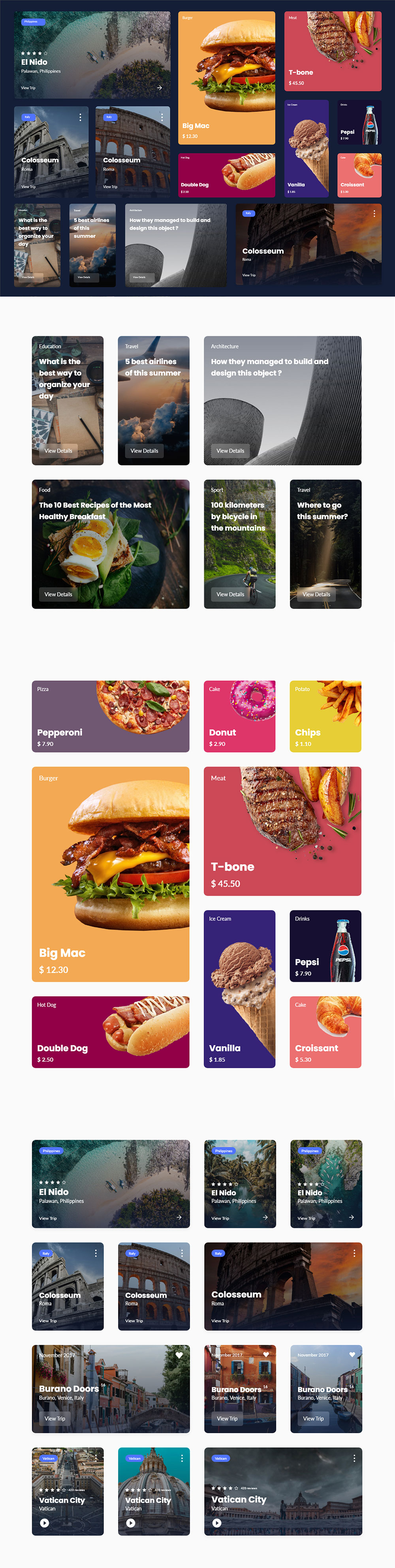 w1146-xd模块组件美食彩色卡片式设计模板展示UI设计素材源文件下载