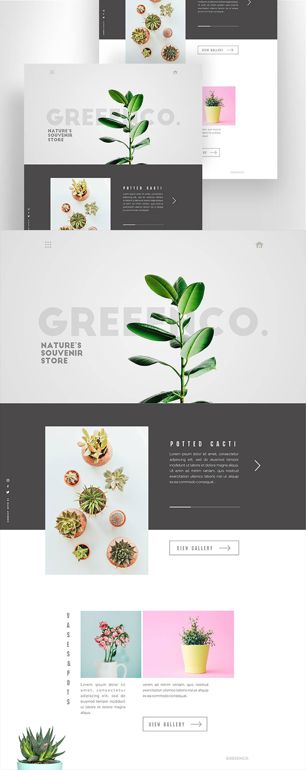 w1412-sketch极简花艺网站首页着陆页展示模板UI设计素材源文件下载