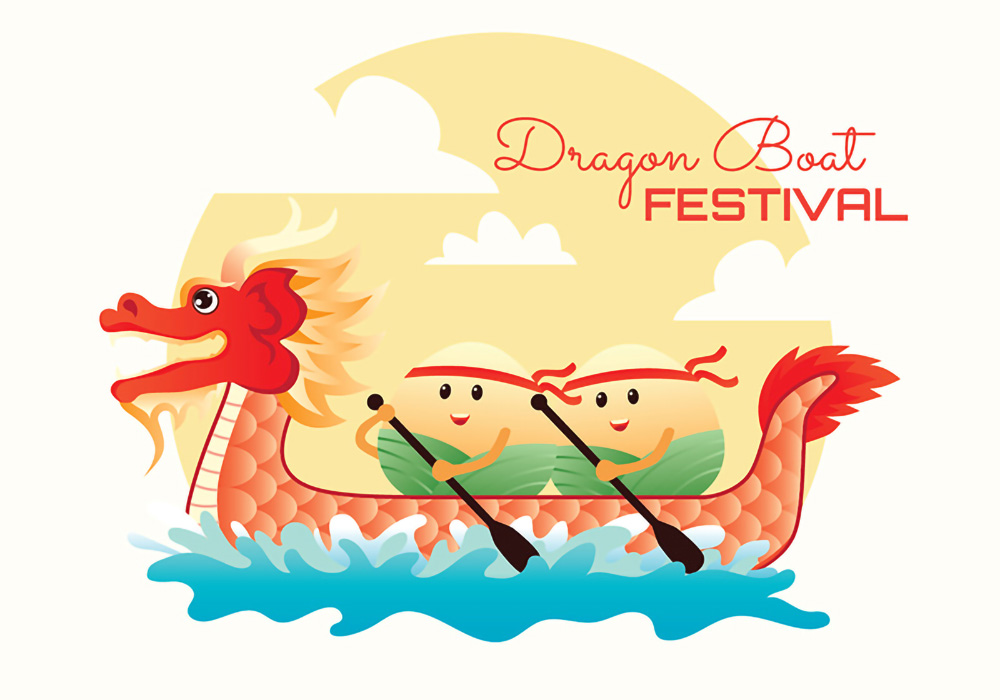 p1543-eps端午节赛龙舟折纸风格插画海报素材粽子下载划船
