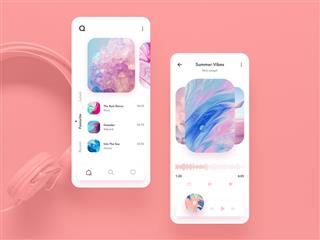 y895-手机音乐app设计ui模板下载源文件列表页播放详情页粉色女性时尚简洁清爽大气极简干净