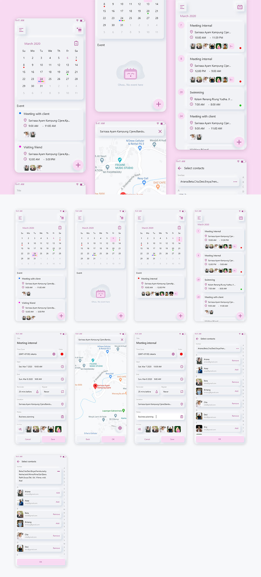 y1354-xd日历粉色白色UI设计日历页列表页设置页APP简洁大气设计素材源文件下载