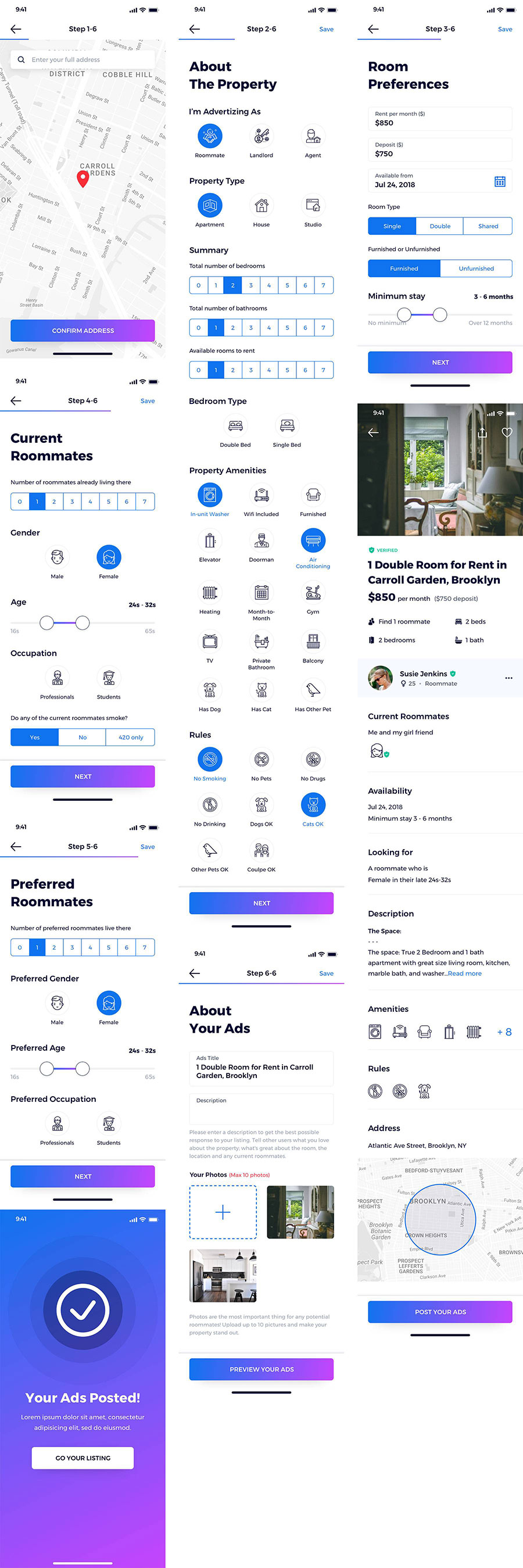 y2294-sketch房屋紫色UI设计导航页筛选页列表页详情页APP简洁设计素材源文件下载