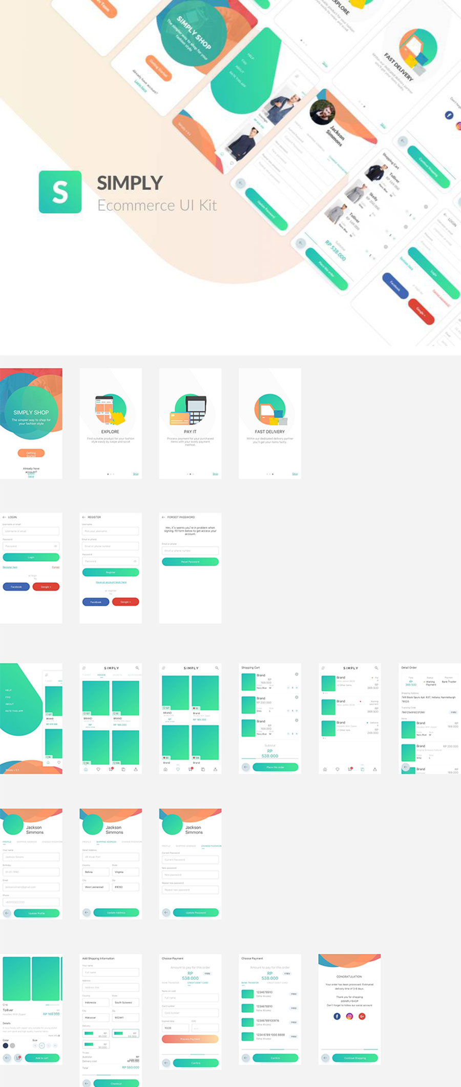 y2251-sketch电商绿色UI设计注册页引导页首页订单页购物车页列表页APP简洁设计素材源文件下载