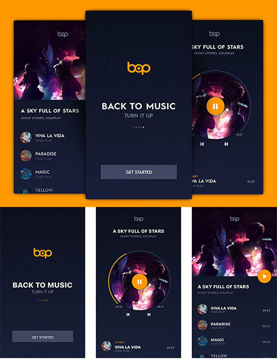 y1806-sketch音乐深黑色UI设计引导页播放页列表页APP简洁设计素材源文件下载
