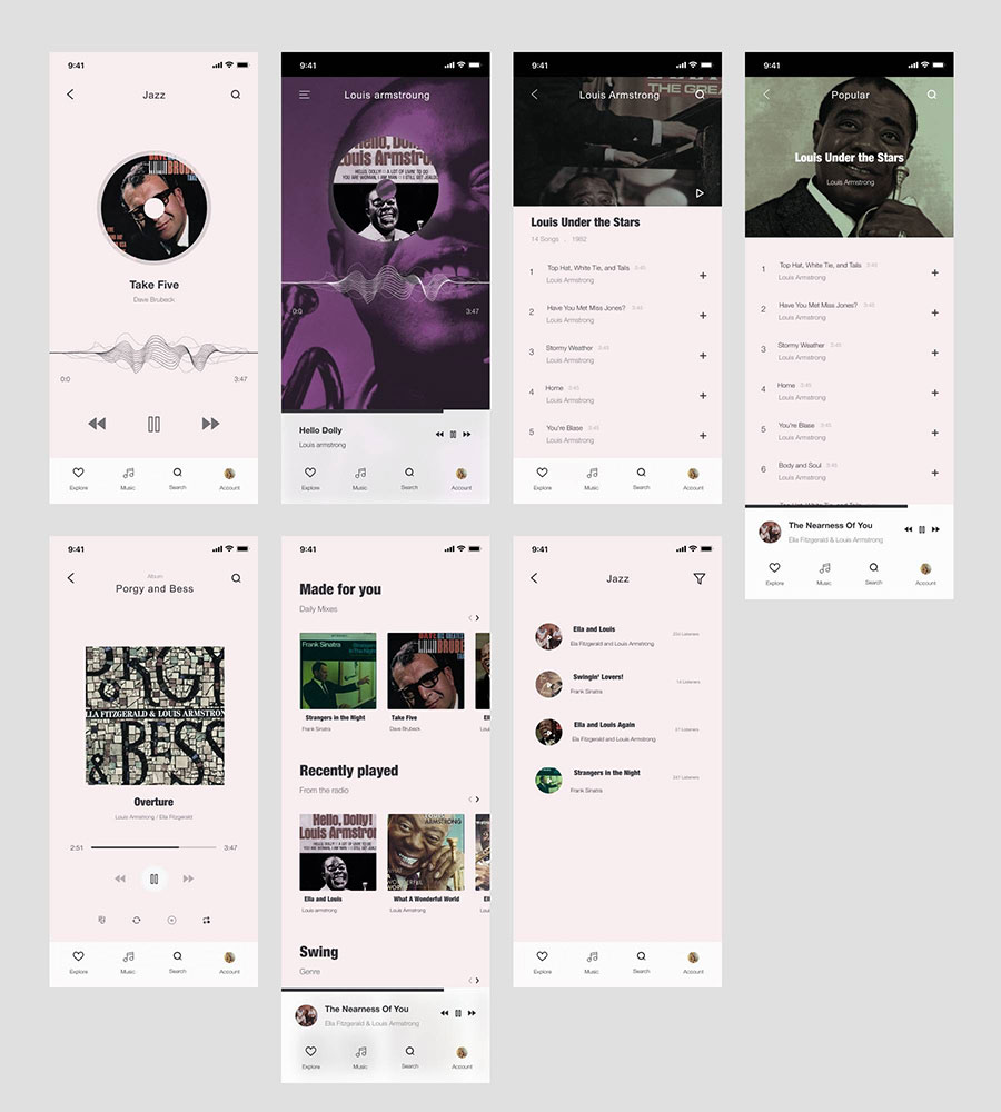 y1805-sketch音乐浅色UI设计播放页列表页APP简洁设计素材源文件下载
