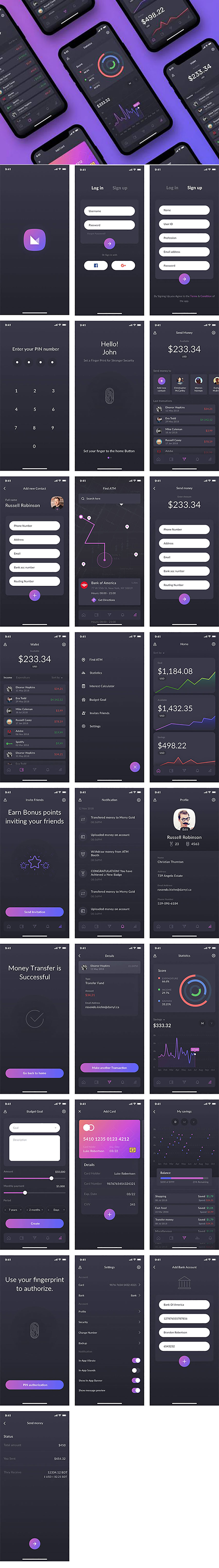 y2143-sketch金融数据展示图表可视化黑色UI设计启动页登录页注册页验证页导航页账单页菜单页数据页钱包支付页APP设计素材源文件下载