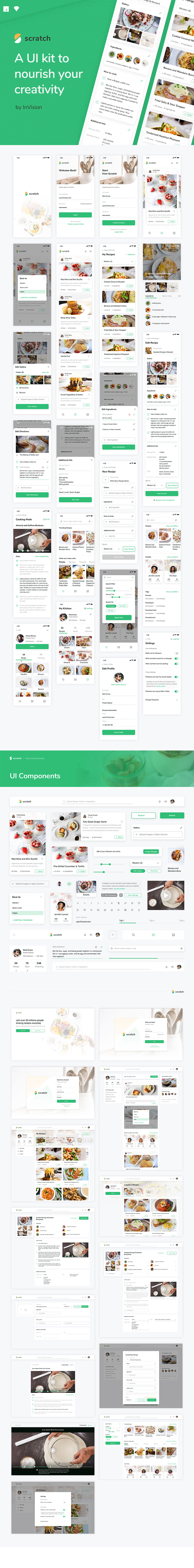 y2120-sketch美食类绿色UI设计启动页登录页注册页列表页详情页筛选页播放页APP极简大气设计素材源文件下载