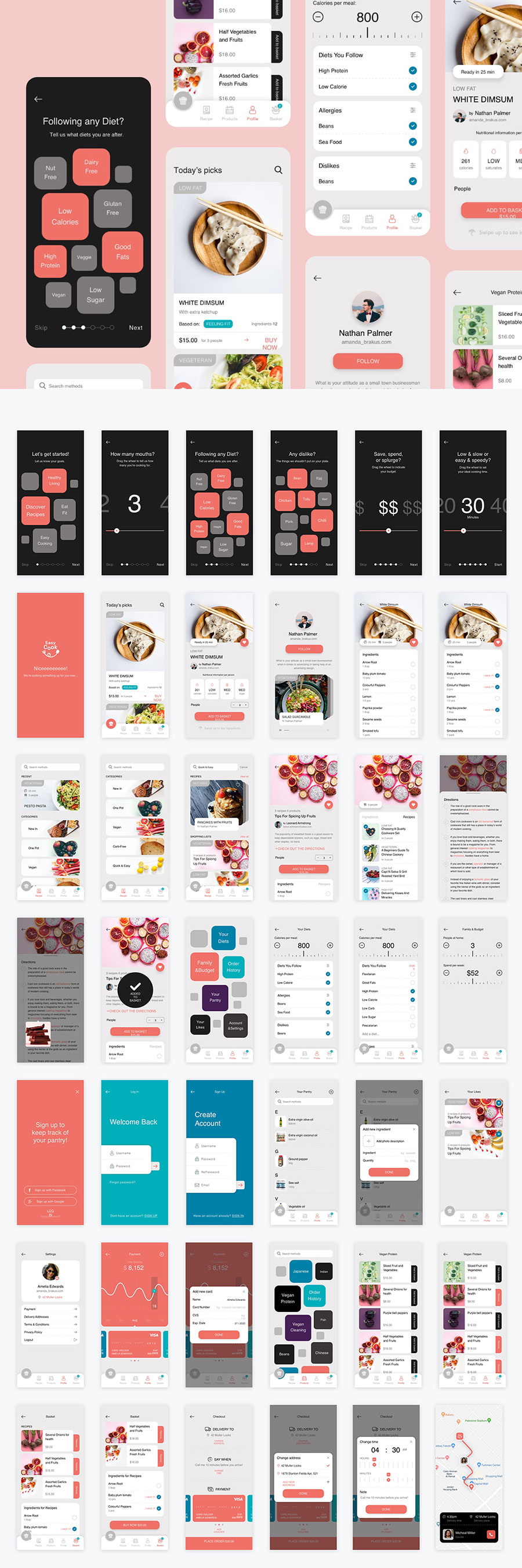 y2112-sketch美食红色UI设计启动页首页个人中心页列表页搜索页数据页导航页订单页APP简洁设计素材源文件下载