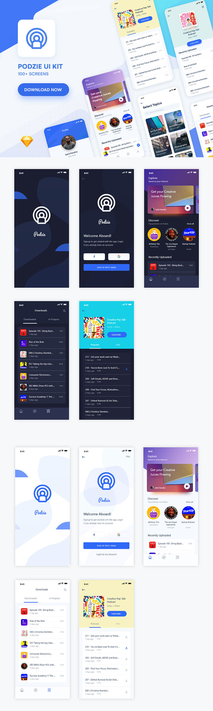 y1978-sketch社交蓝色UI设计启动页登录页首页列表页APP简洁设计素材源文件下载
