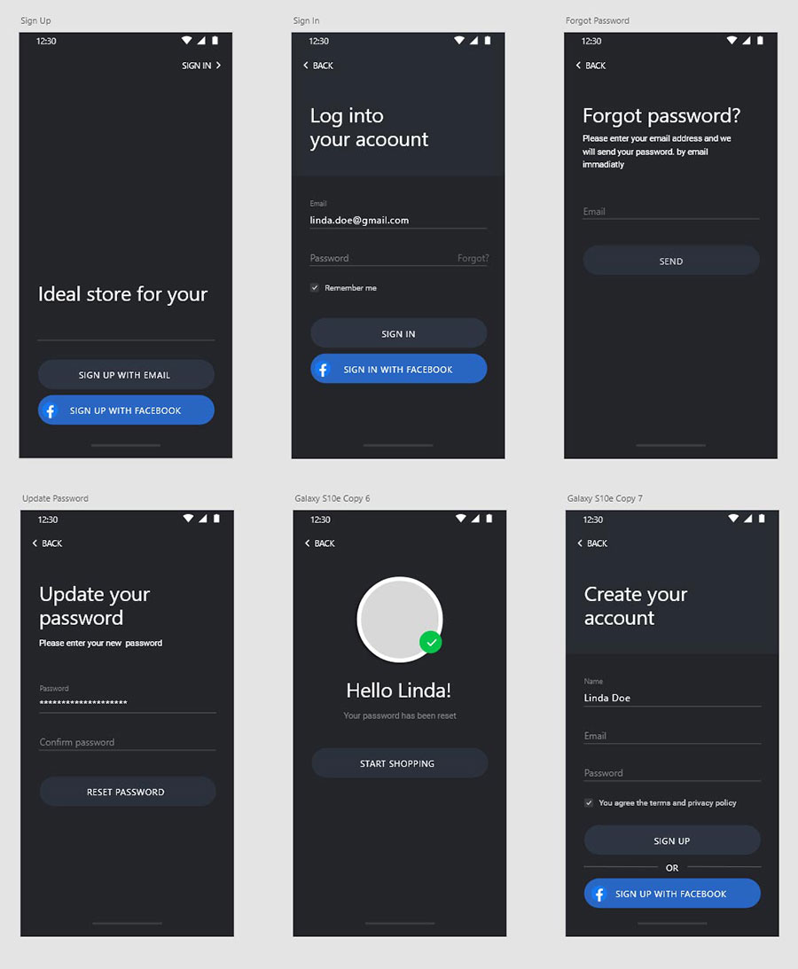 y1953-sketch社交暗黑色UI设计登录页注册页密码找回页APP极简大气设计素材源文件下载