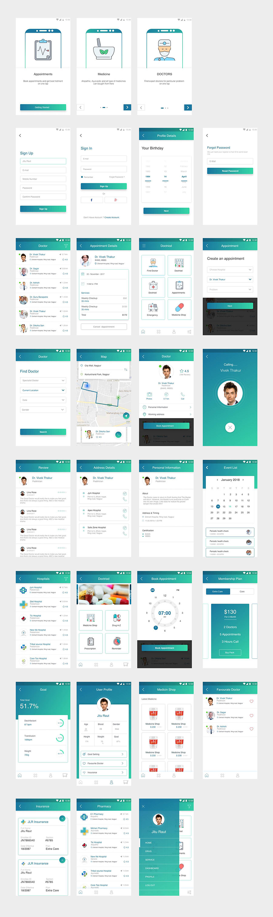 y1103-xd医疗绿色UI设计登录页注册页引导页导航页列表页个人中心页APP简洁设计素材源文件下载