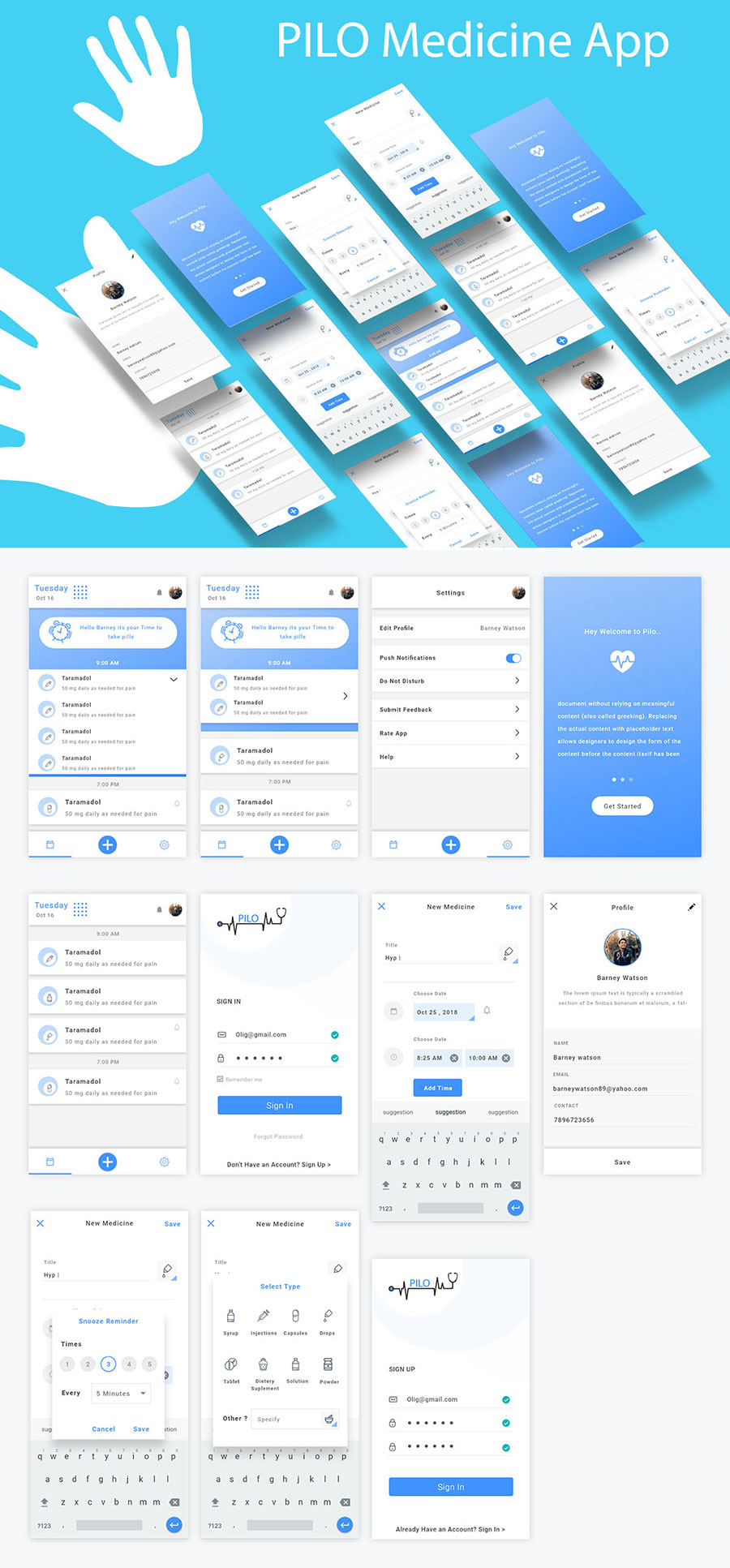 y1102-xd医疗蓝色UI设计登录页注册页列表页引导页APP简洁设计素材源文件下载