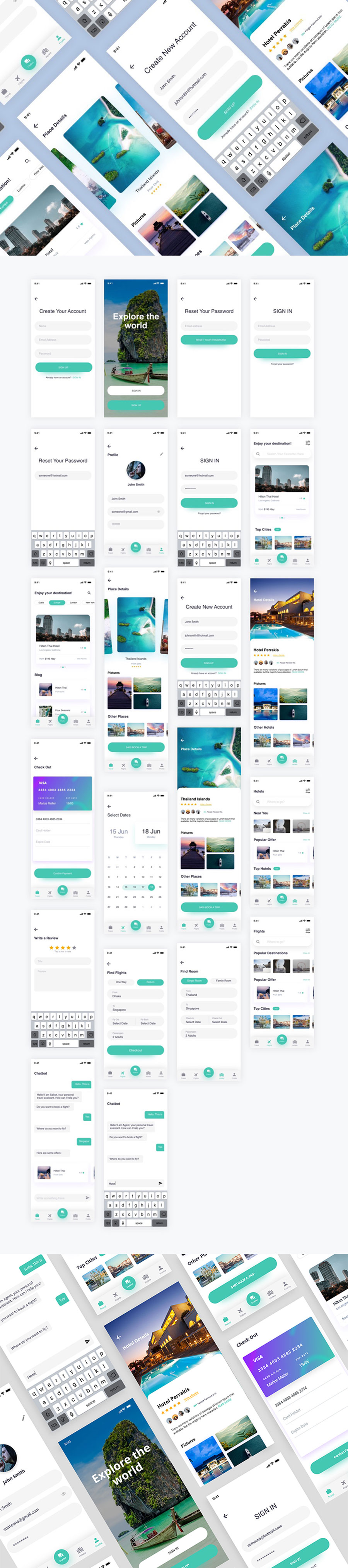 y1026-xd整套旅行绿色UI设计登录页注册页验证页详情页聊天页APP极简大气设计素材源文件下载