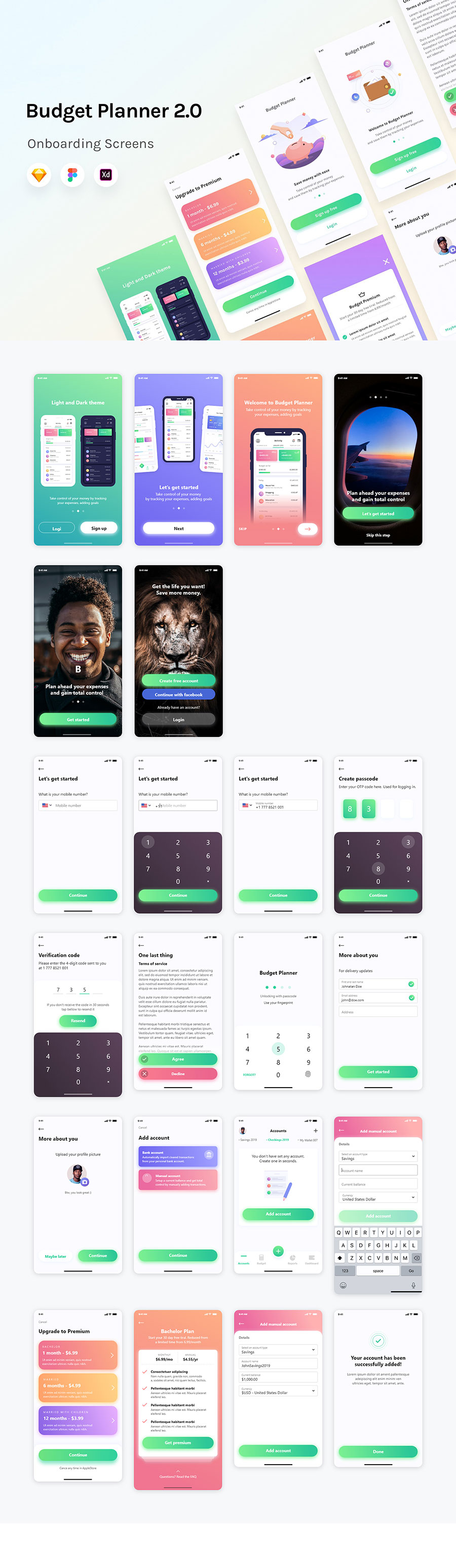 y1675-xd_sketch登录绿色紫色红色UI设计引导页登录页注册页验证页列表页APP简洁设计素材源文件下载