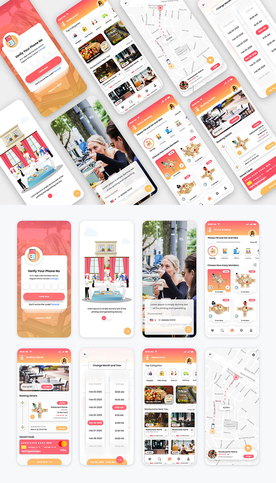 y1613-xd餐厅预订红色渐变UI设计登录页启动页首页搜索页发现页导航页APP极简大气设计素材源文件下载