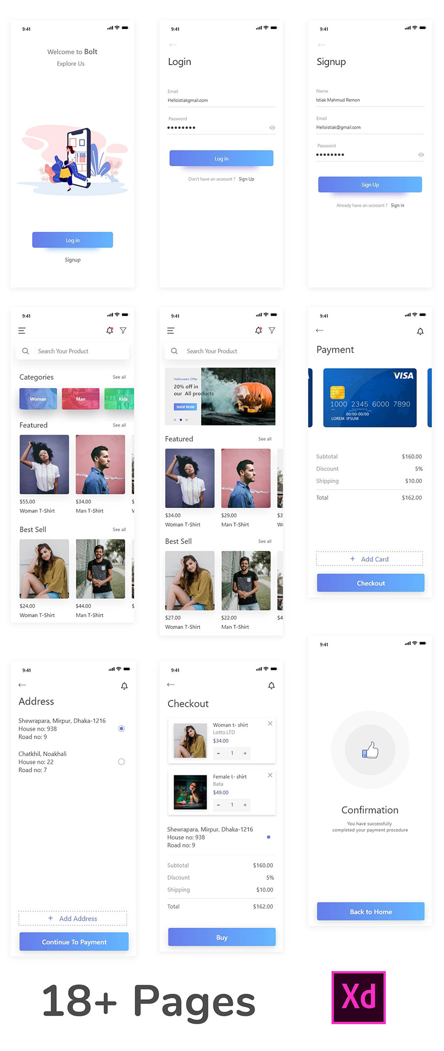 y1556-xd电商蓝色UI设计启动页登录页注册页首页钱包页订单页APP简洁设计素材源文件下载