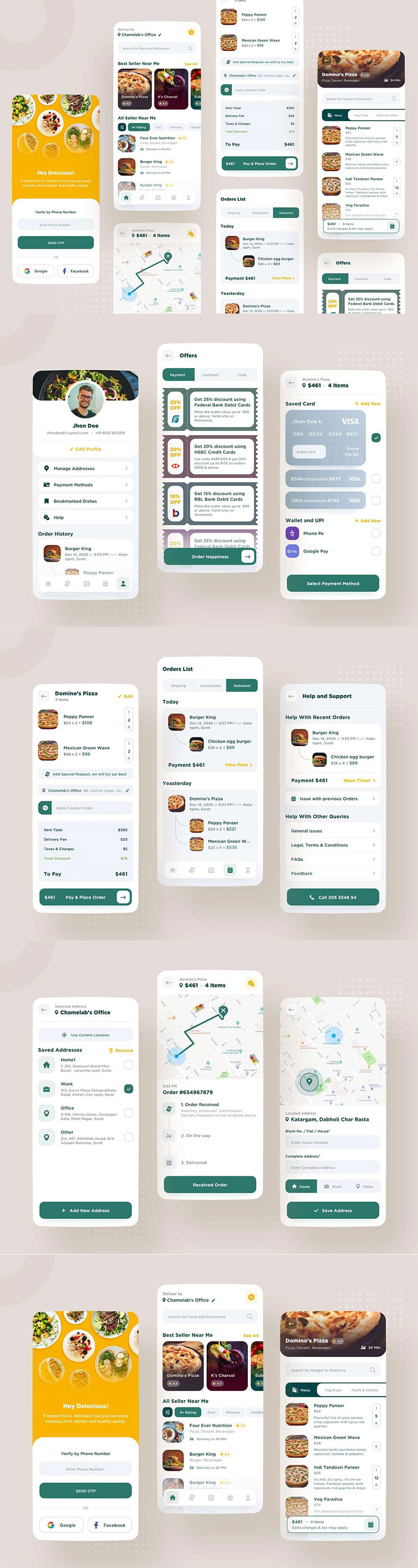 y1410-xd美食黄色绿色UI设计登录页首页导航页订单支付页个人中心页APP简洁设计素材源文件下载