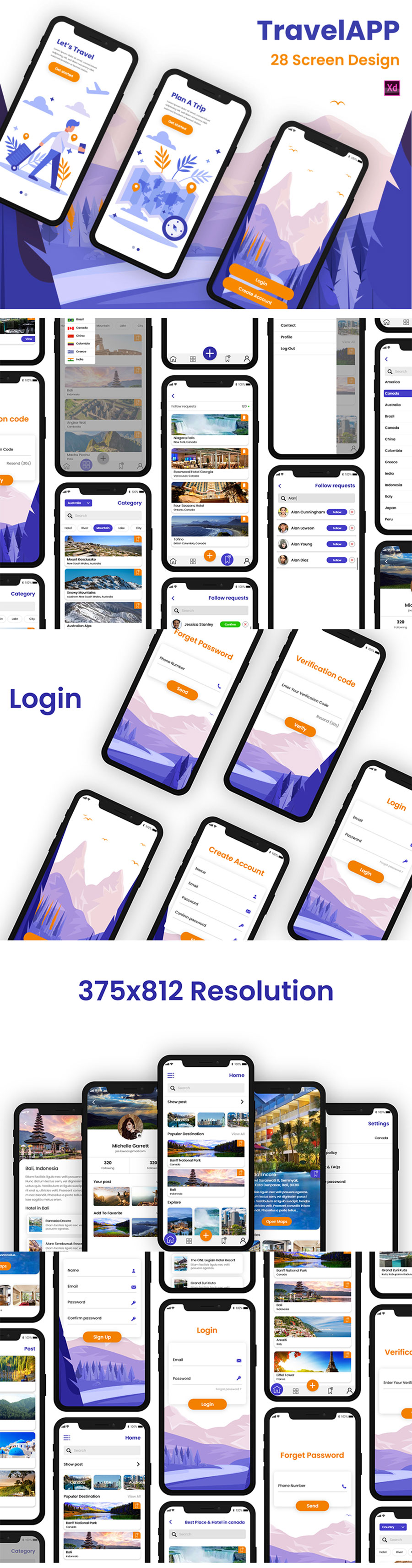 y1395-xd旅行紫色橙色UI设计引导页登录页注册页首页APP极简大气设计素材源文件下载