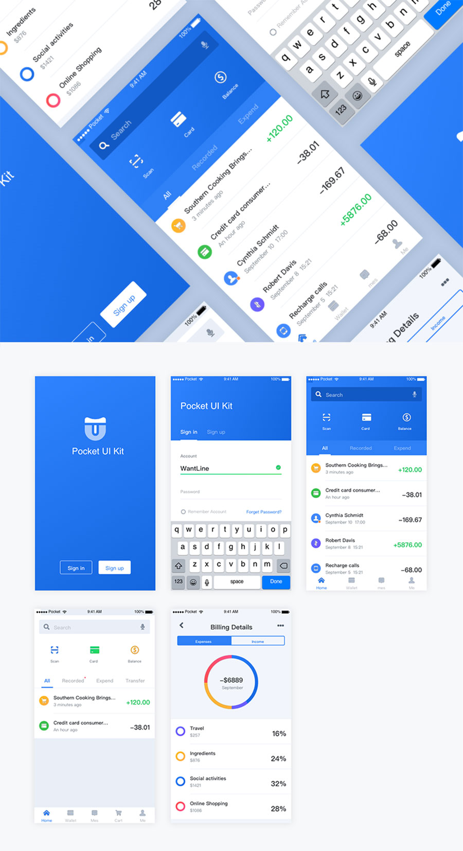 y1734-sketch支付蓝色UI启动页登录页首页列表页数据页APP简洁大气设计素材源文件下载