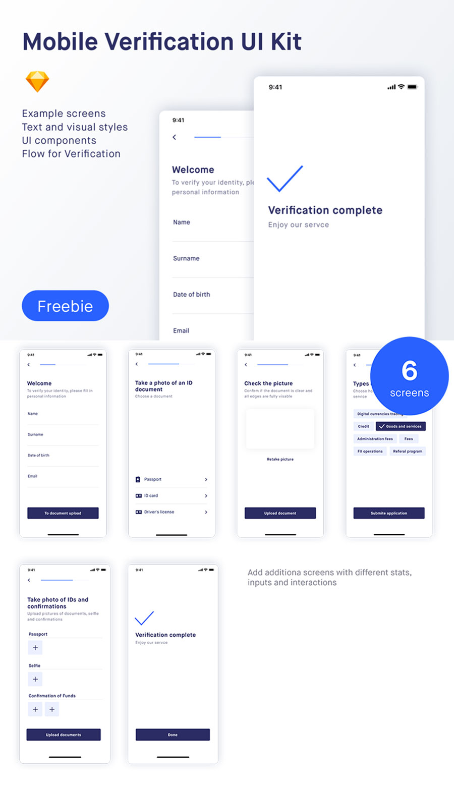 y1651-sketch注册蓝色UI设计登录页注册页验证页APP简洁设计素材源文件下载