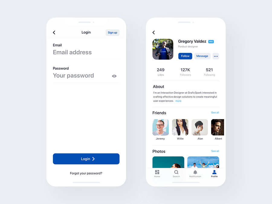 y1947-sketch设计蓝色UI设计登录页个人中心页APP极简大气设计素材源文件下载