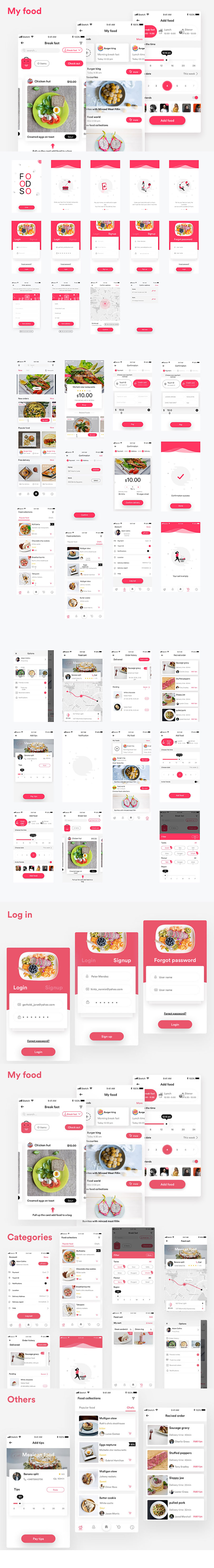 y1848-sketch外卖平台红色UI设计美食列表页个人中心页缺省页购物车页支付页订单页侧滑菜单页导航页登录页APP简洁设计素材源文件下载