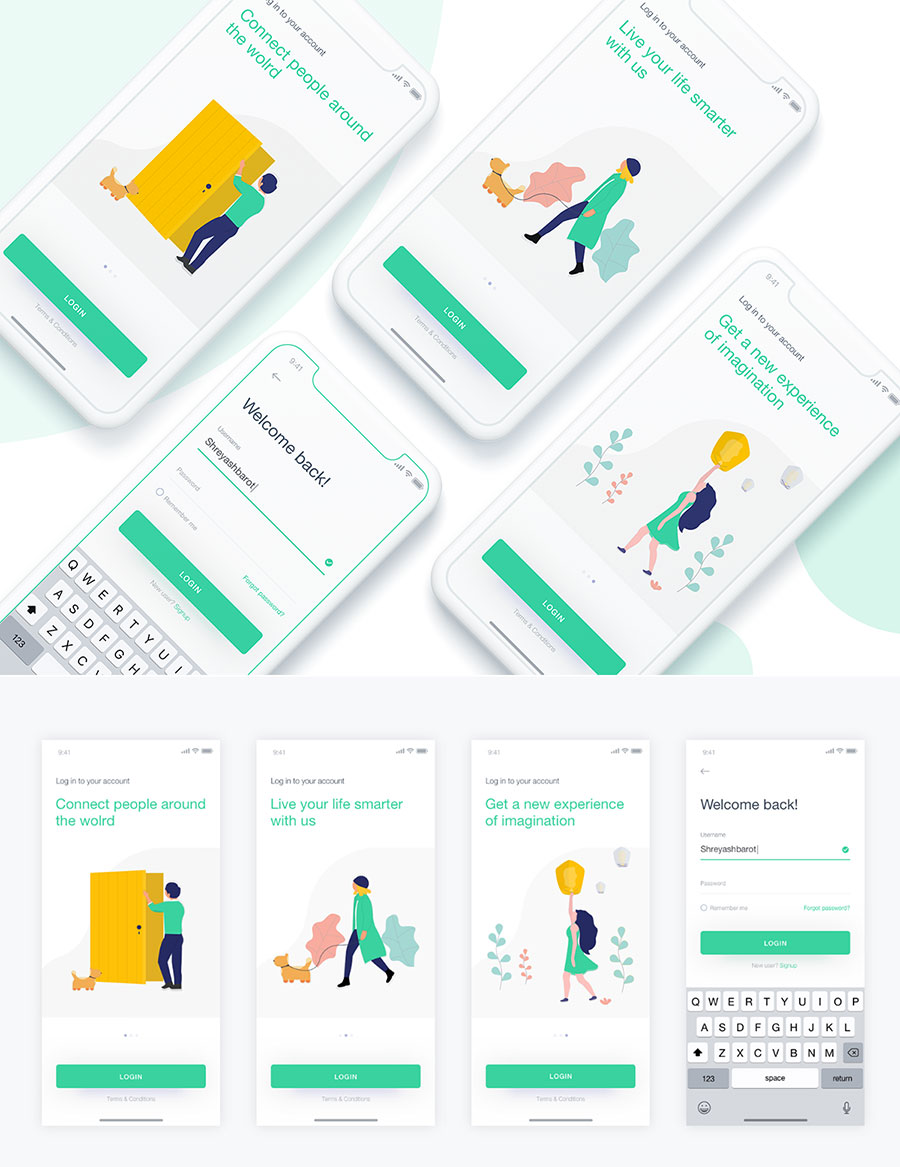 y1818-sketch引导绿色UI设计登录页引导页APP高端设计素材源文件下载