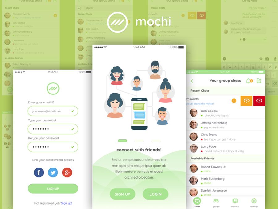 y2017-sketch启动页社交绿色UI设计登录页引导页列表页APP简洁设计素材源文件下载