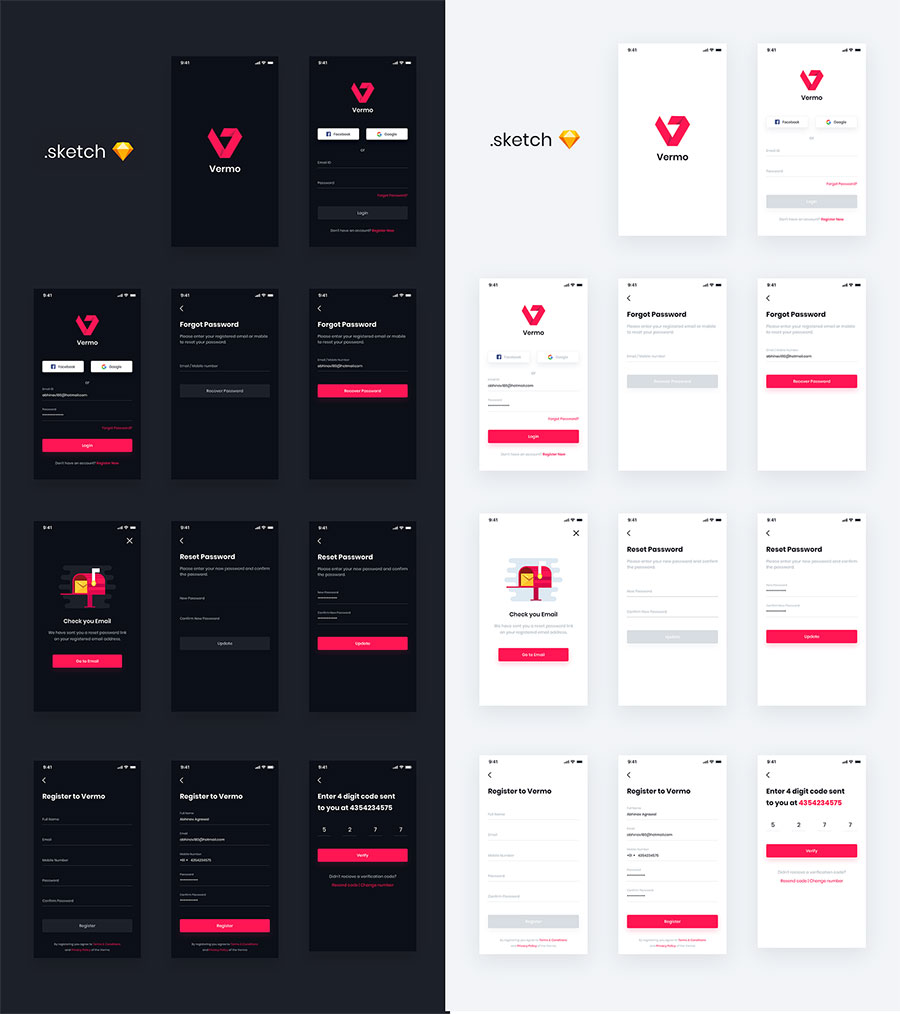 y2336-sketch登录明暗两种主题风格登录页启动页注册页APP简洁设计素材源文件下载