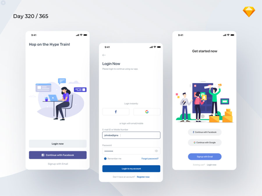 y2335-sketch登录蓝色紫色UI设计登录页注册页APP简洁设计素材源文件下载