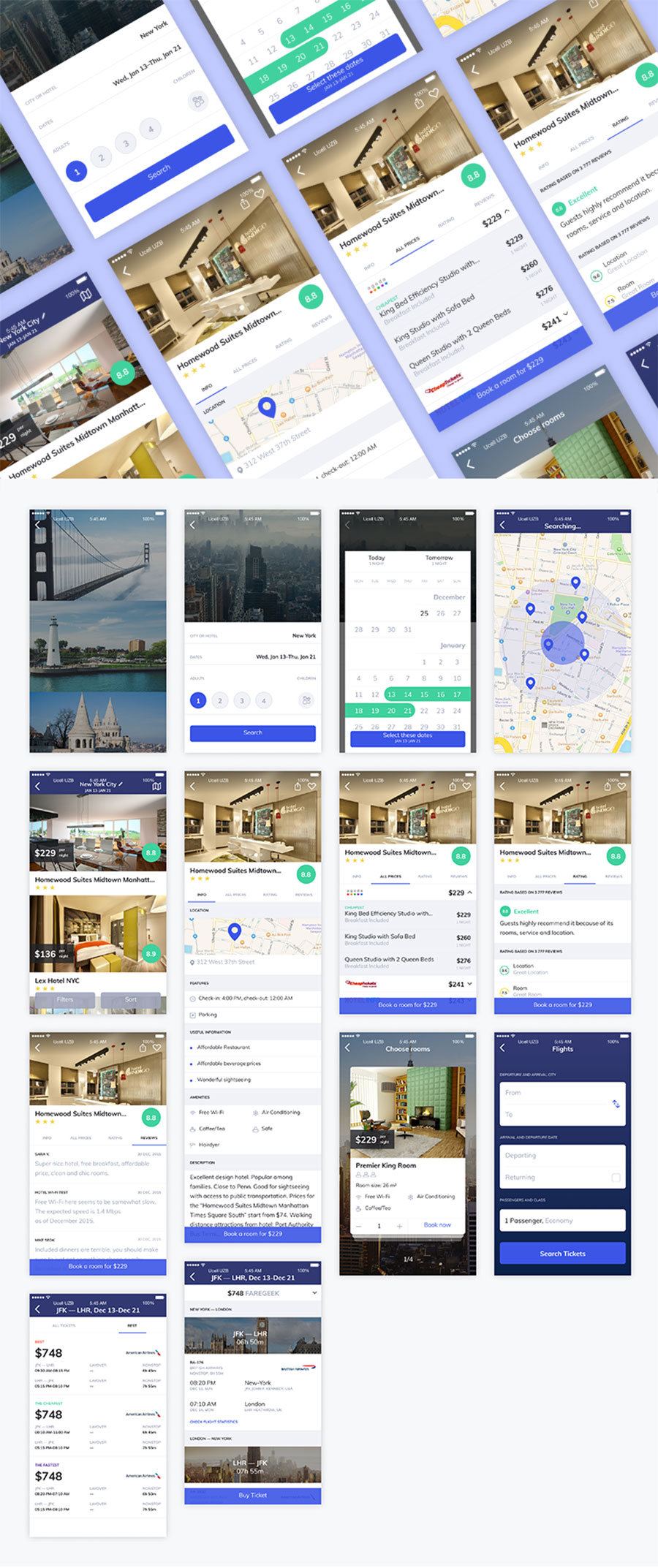 y2090-sketch旅行蓝色UI设计导航页注册页登录页列表页详情页日历页APP简洁设计素材源文件下载
