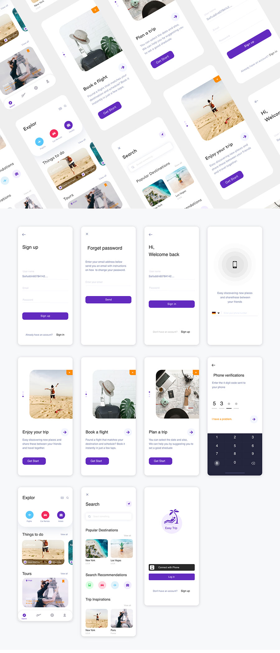 y2528-xd旅行紫色白色UI设计登录页注册页启动页首页搜索页APP简洁大气设计素材源文件下载