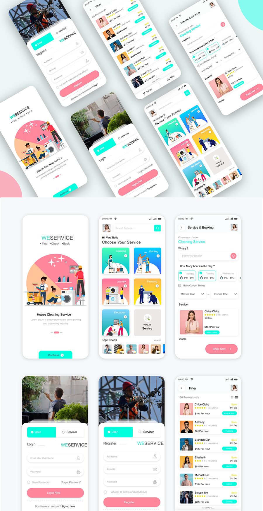 y2502-xd家政绿色红色UI设计引导页首页登录页注册页列表页APP简洁大气设计素材源文件下载