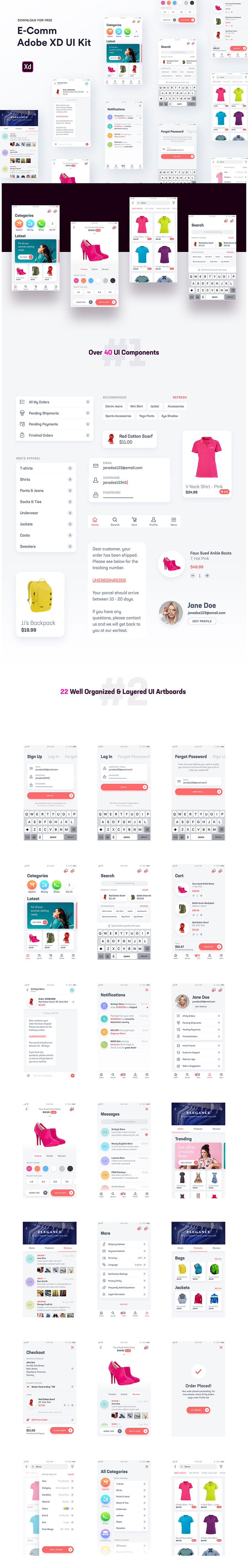 y2477-xd电商白色UI设计登录页注册页商品展示页列表页购物车订单页简洁APP设计素材源文件下载