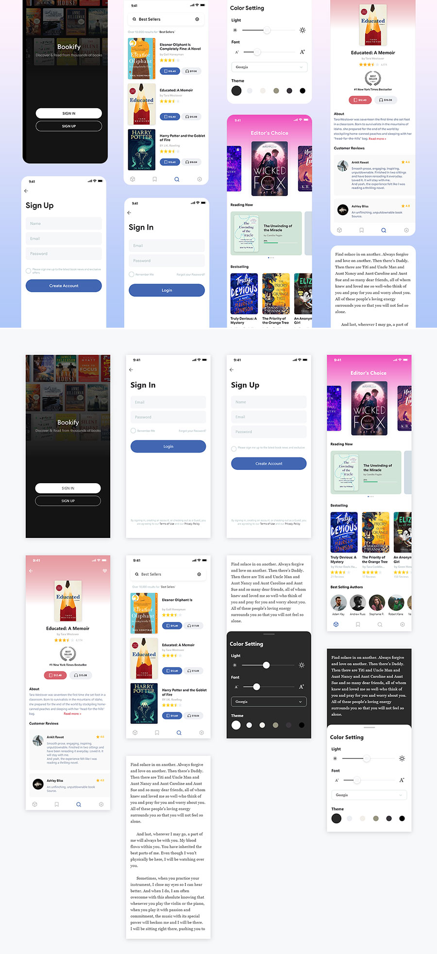 y1471-xd读书蓝色UI设计登录页注册页列表页详情页APP简洁设计素材源文件下载