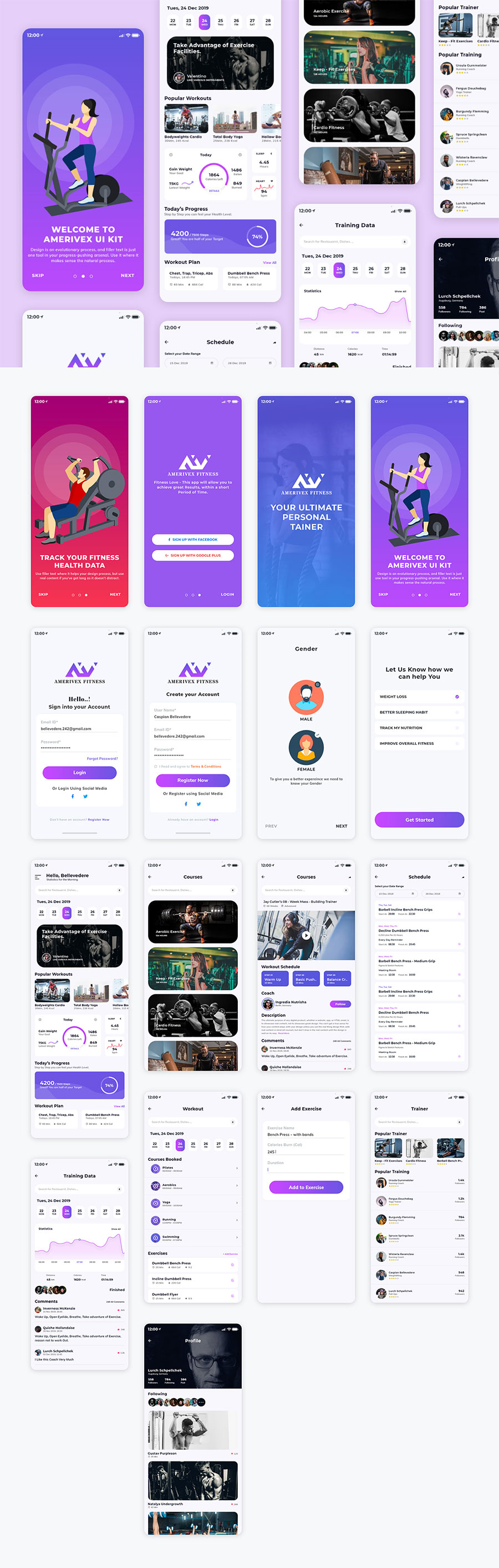 y1437-xd健身紫色UI设计登录页注册页启动页首页列表页搜索页数据页APP简洁大气设计素材源文件下载