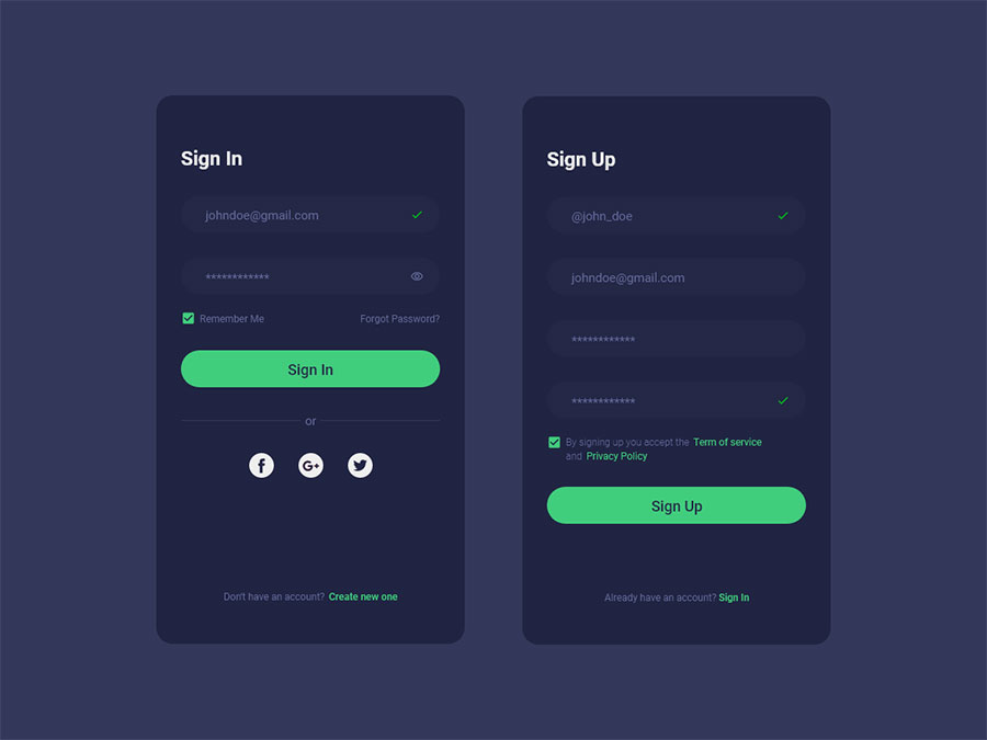 y1421-xd简洁暗色绿色UI设计登录页注册页APP极简大气设计素材源文件下载