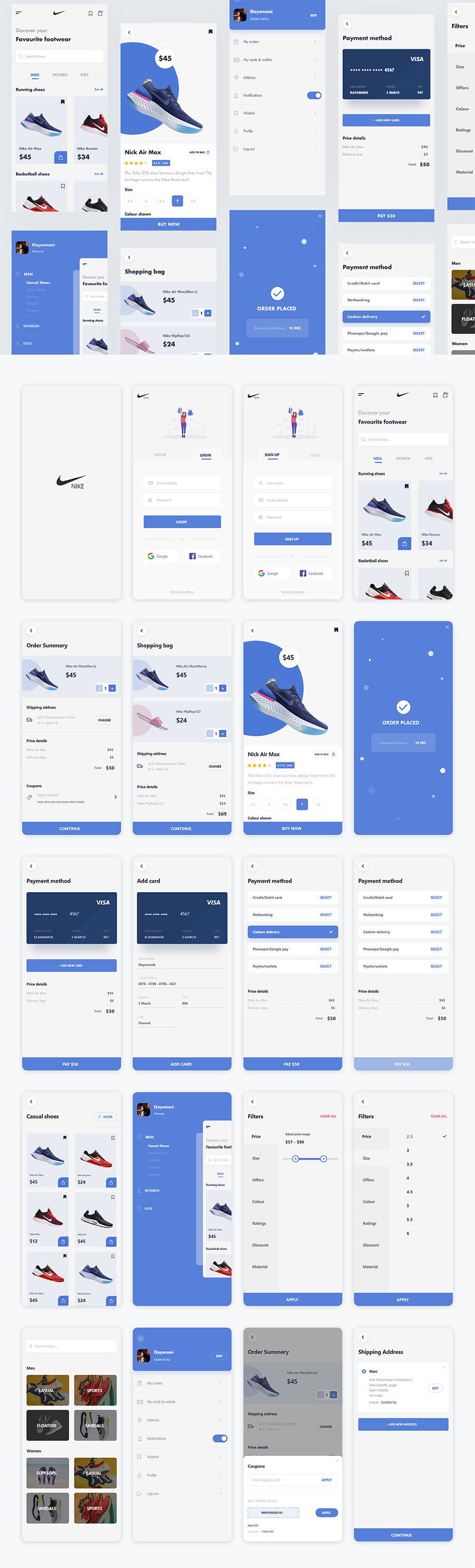 y1564-xd电商平台蓝色UI设计启动页登录页注册页搜索页订单页钱包支付页APP简洁设计素材源文件下载