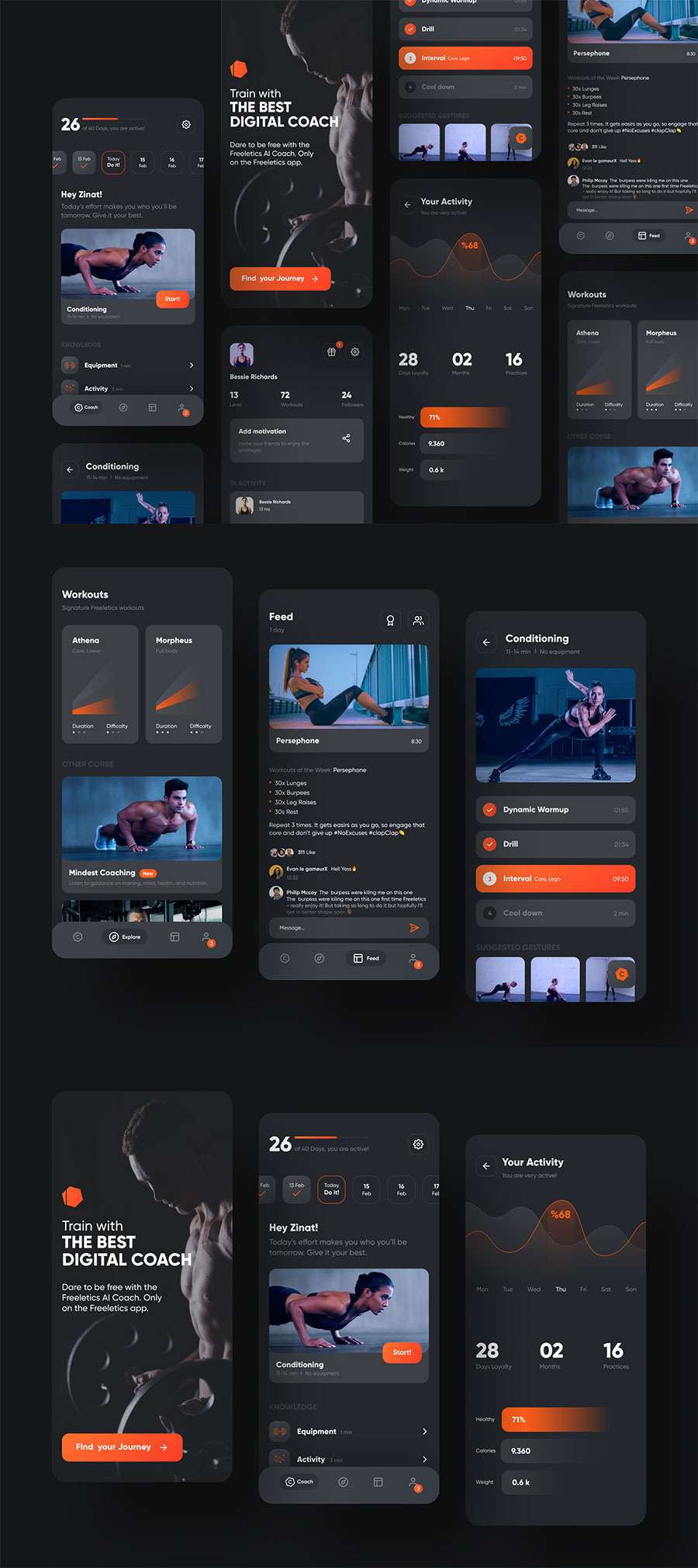 y3137-fig健身黑色UI设计首页启动页个人中心页APP简洁大气设计素材源文件下载