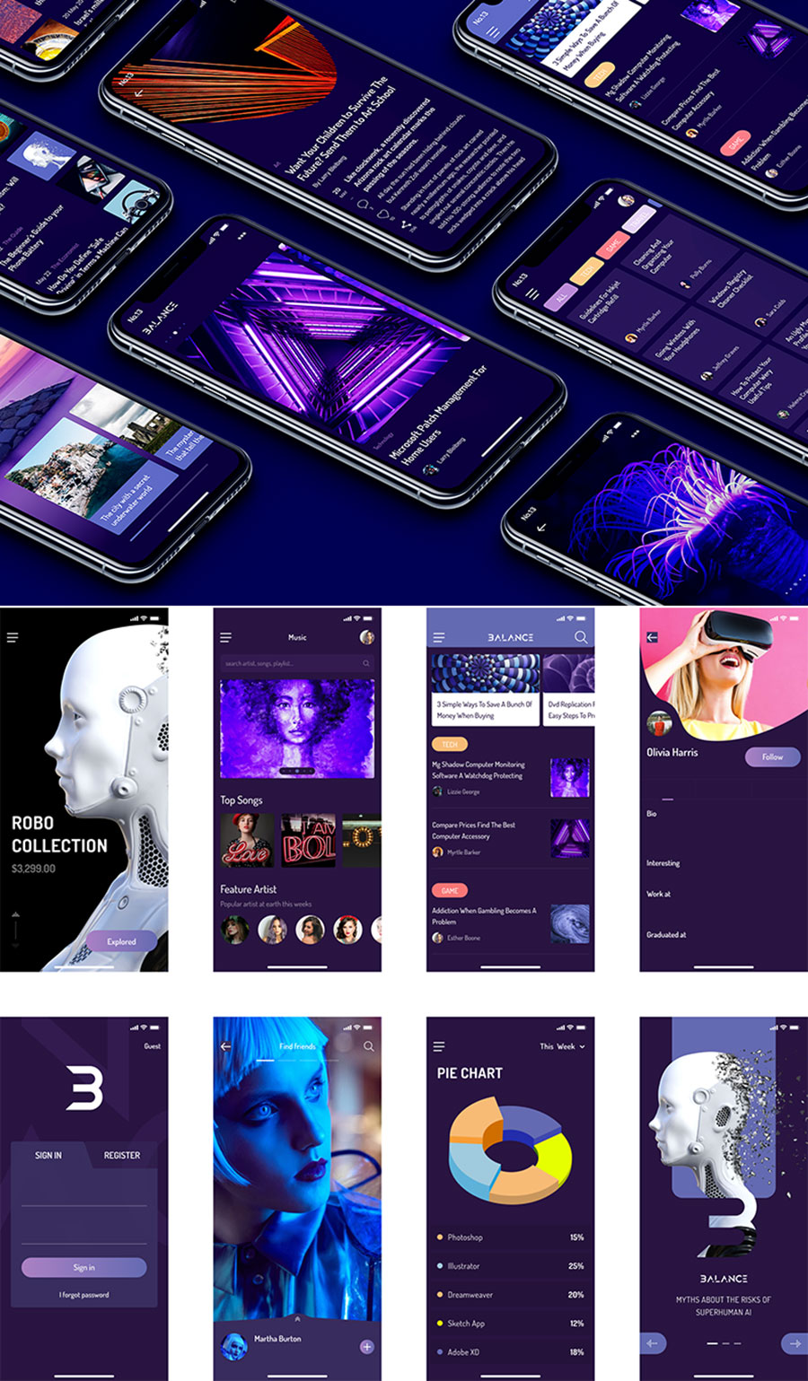 y2716-sketch创意紫色UI设计启动页登录页首页列表页引导页APP高端大气设计素材源文件下载