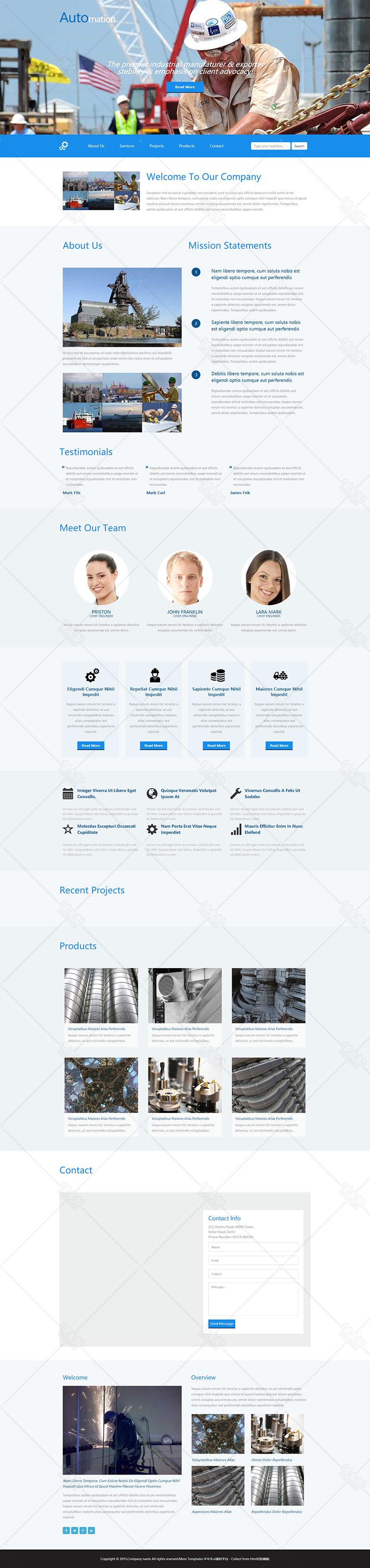 h539-蓝色简洁大气企业公司集团官网html自适应适配移动端网页模板下载