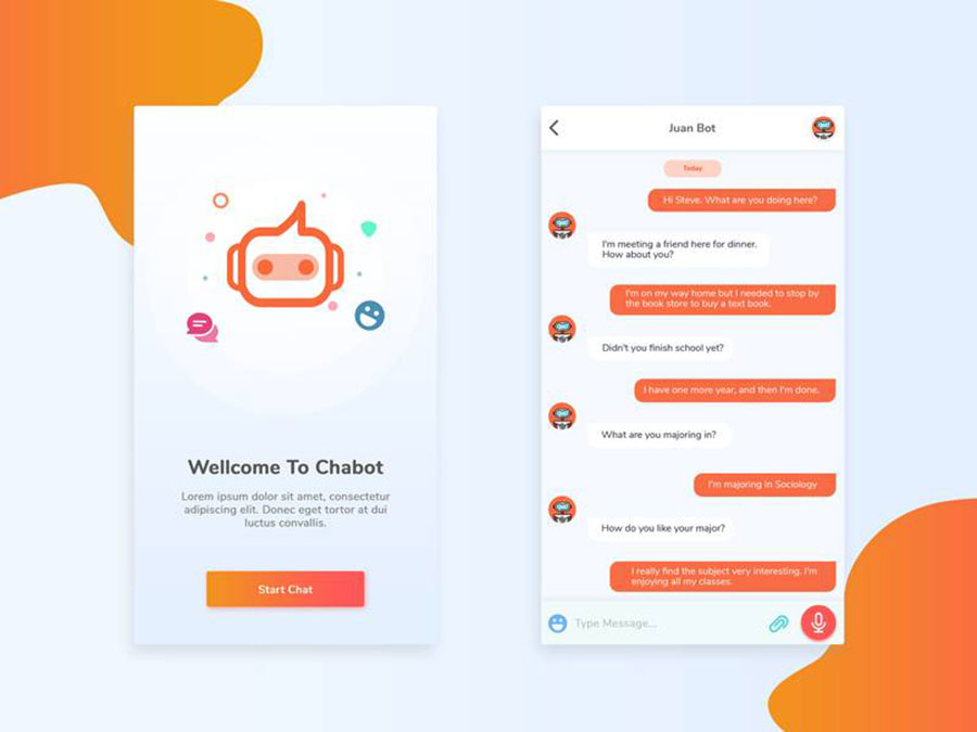 y2784-psd聊天机器橙色UI设计登录页聊天页APP简洁设计素材源文件下载