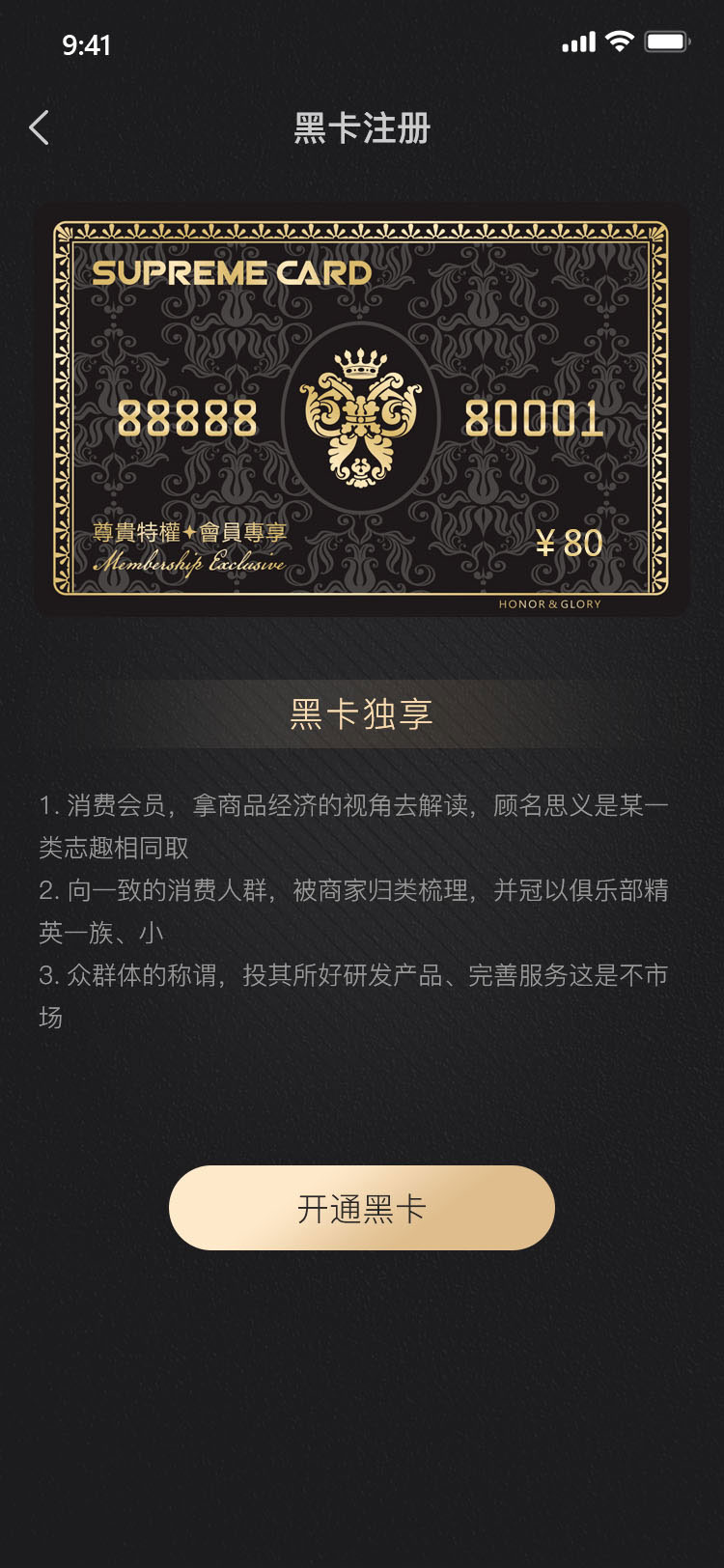 y979-psd黑金时尚app手机移动端模板源文件下载黑卡注册详情页