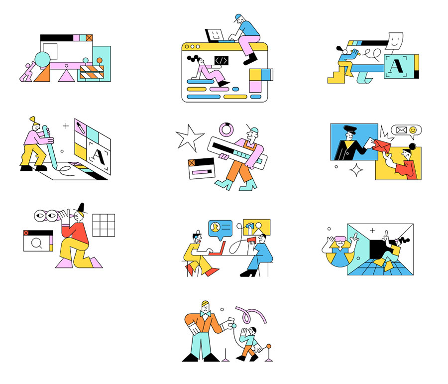 i1083-xd矢量插画黄色红色蓝色UI设计矢量场景插画简洁设计素材源文件下载