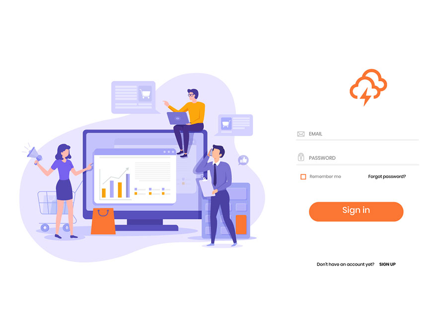 w1032-ai创意工作插画绘制登录页紫色橙色模板UI设计素材源文件下载注册