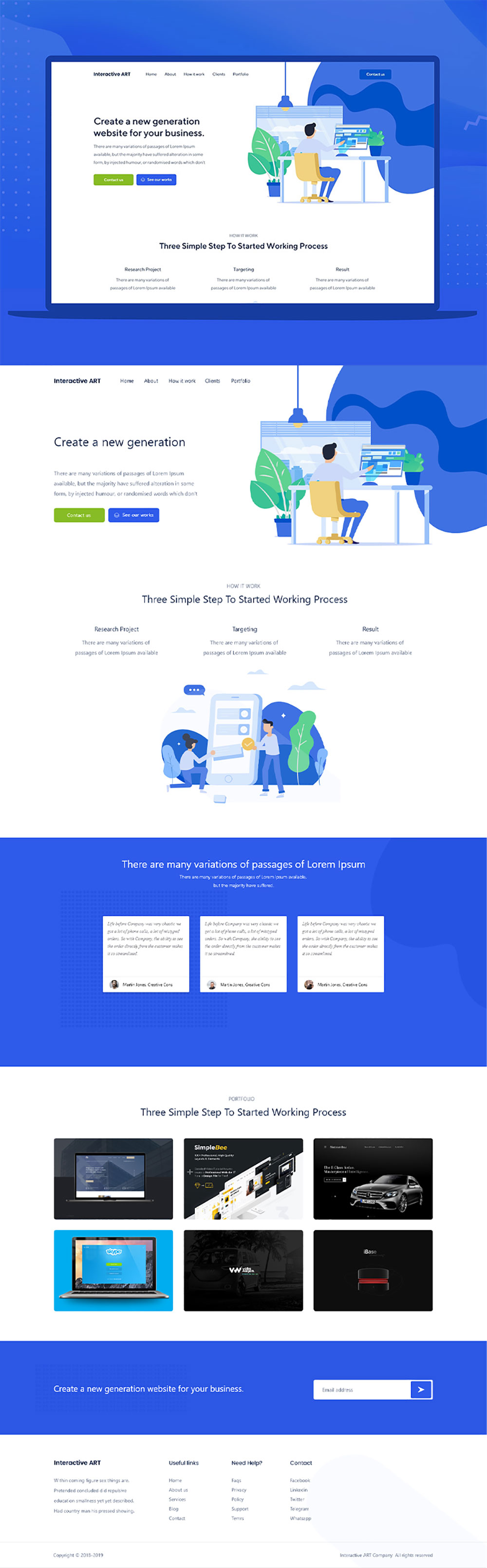w1109-xd蓝色创意插画绘制设计机构网站首页着陆页落地页展示模板UI设计素材源文件下载