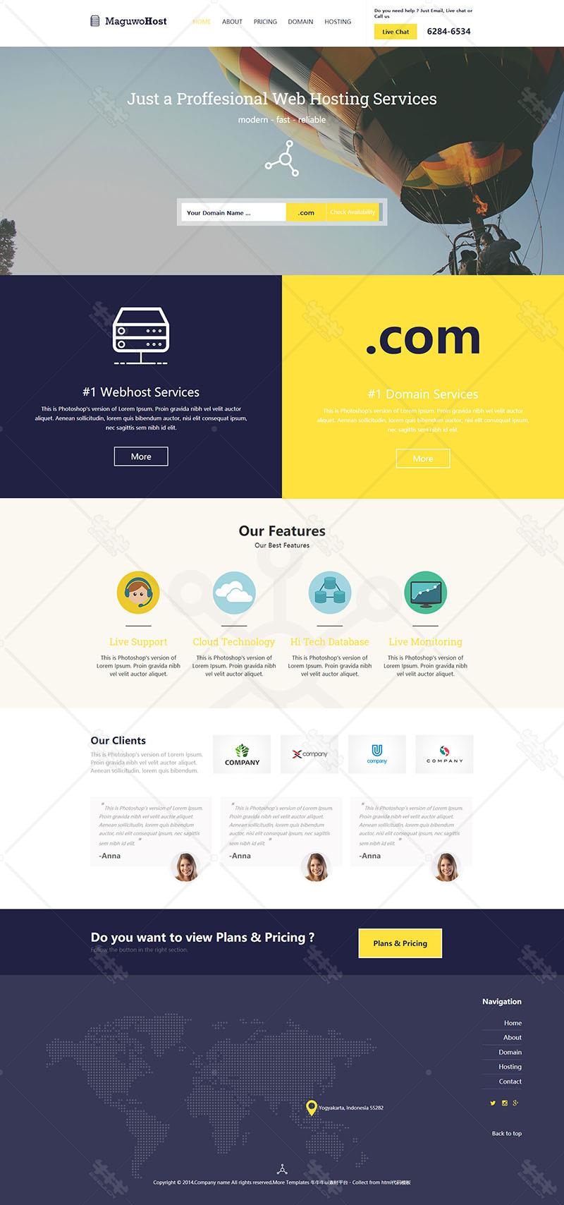 h768-创意黄色域名注册idc服务器供应商响应式html模板下载