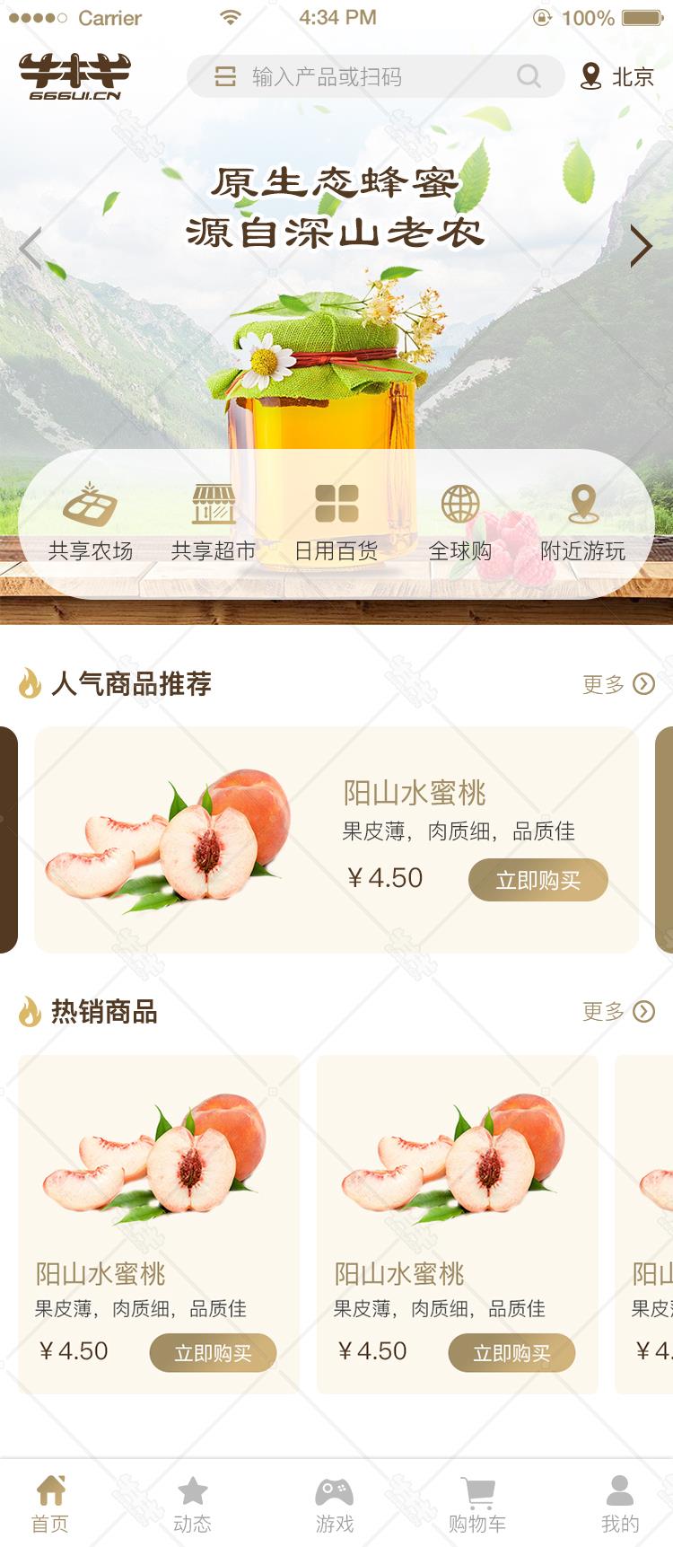 y210-棕金色APP首页农产品清爽电商手机页面商品水果人气推荐ui设计psd移动应用源文件下载