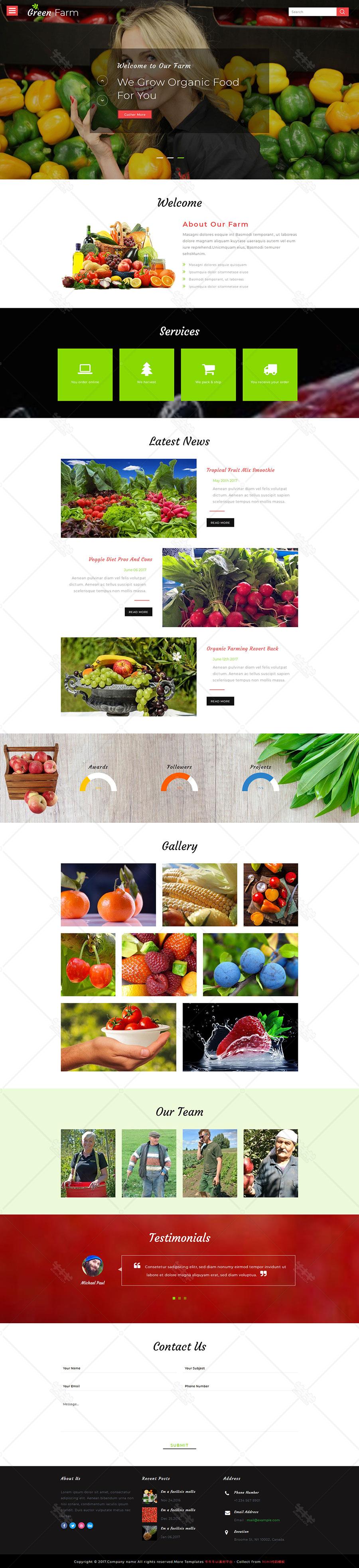 红色 果蔬 植物 环保 水果 企业 官网 html 响应式 模板 下载