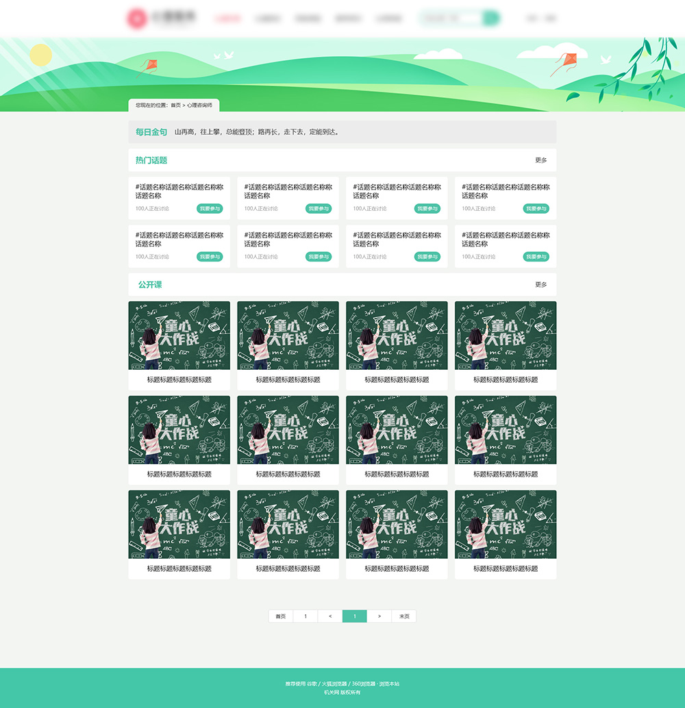 w1976-psd内页性新闻介绍ui设计模板源文件下载扁平绿色简洁大气列表页